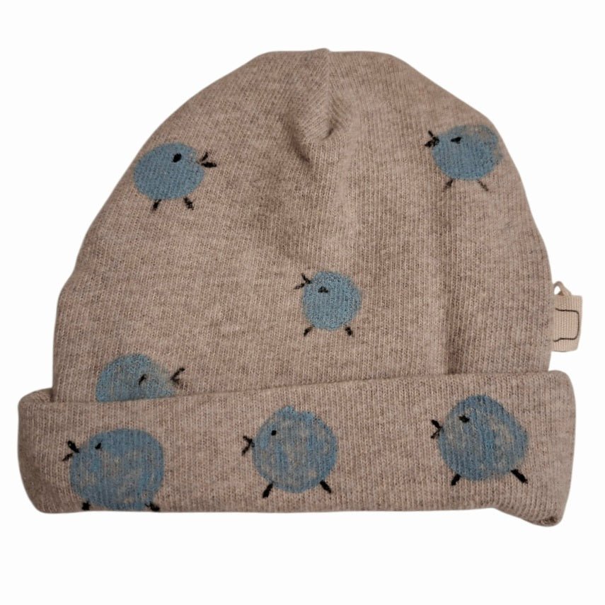Este gorro combina con el conjunto de 1ª puesta, o el mono Beige Pollitos Azul también de Lolaletost.