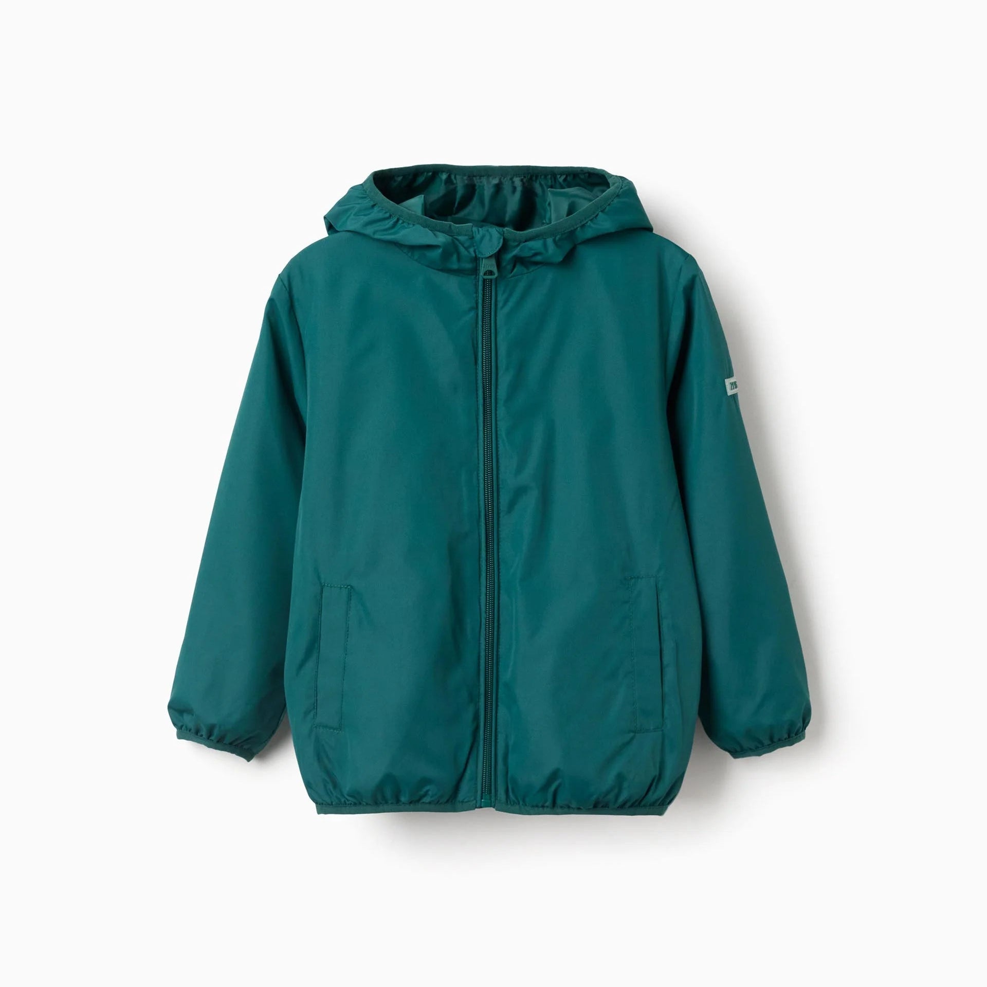 Chaqueta Cortavientos Verde unisex con capucha ZY, beige y azul. Puños y bajo elásticos para un ajuste perfecto. Con bolsillos laterales y cierre de cremallera. Forro en jersey azul oscuro para mayor comodidad. Etiqueta interior para poner el nombre. ¡Ideal para entretiempo!