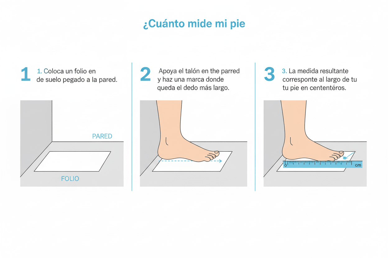 💡 Mide siempre el pie más grande y hazlo a última hora del día, cuando el pie está en su tamaño máximo.