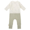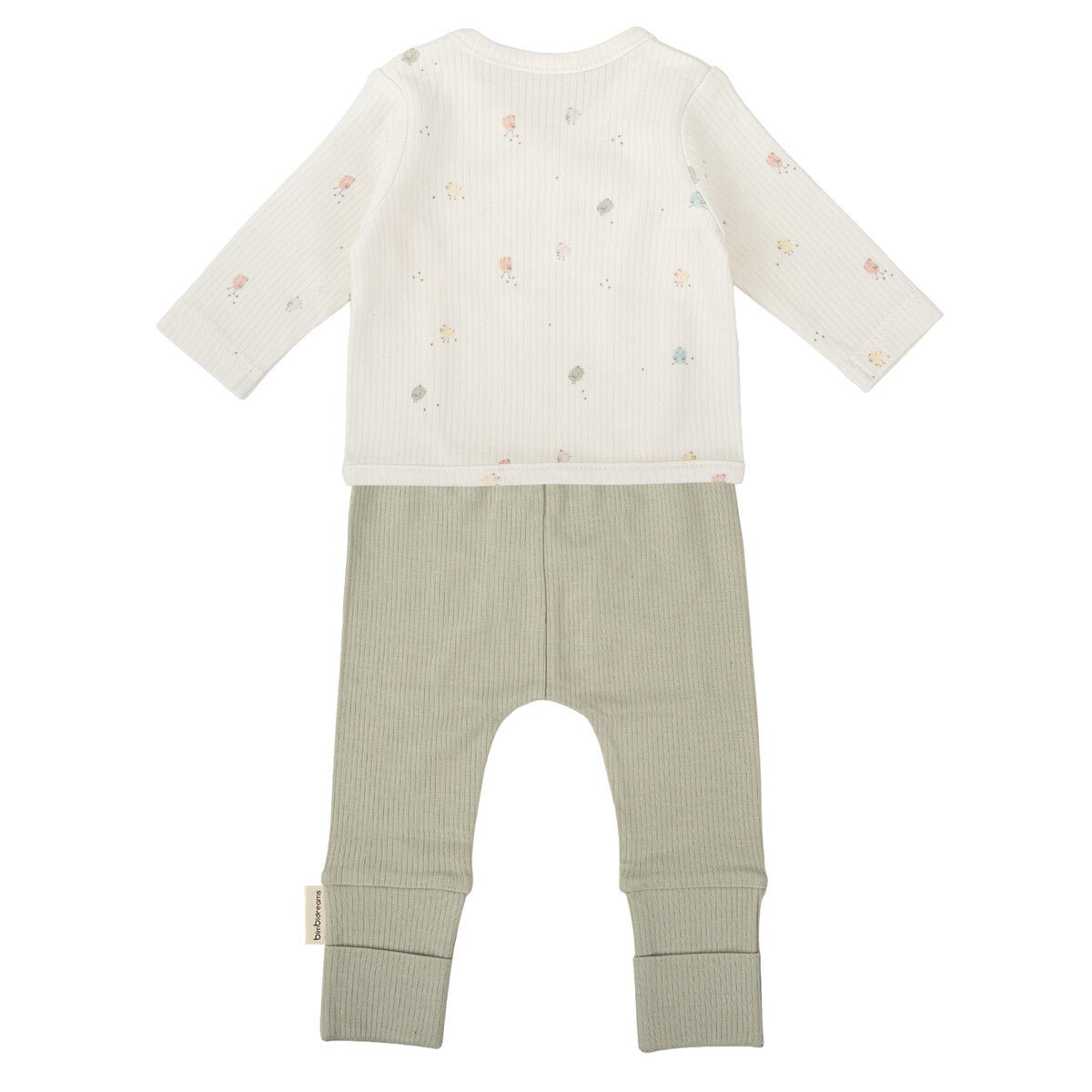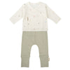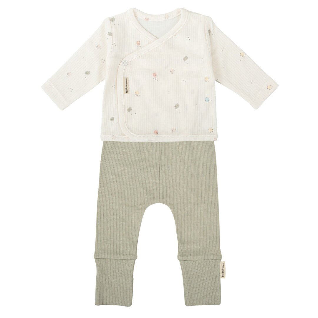 El Conjunto de 1ªPuesta Jubón+Polaina Chicks Verde, de la colección "Casual", de la marca Bimbidreams, es una opción cómoda, sostenible, suave y práctica para los primeros meses de tu bebé.