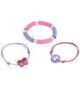 Las pulseras son ajustables: una con goma elástica y las otras dos con cuerda, facilitando que se adapten cómodamente a las muñecas de los niños.