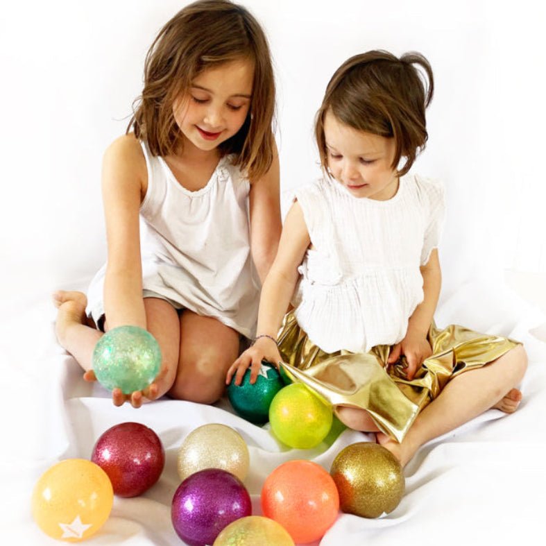 La Pelota Glitter Azul, de la marca Ratatam! es una opción divertida y sostenible. Está hecha a mano en Francia, haciendo que cada diseño sea único. Fabricada con PVC sin ftalatos, es segura. Esta pelota no solo es divertida, sino también una pieza de diseño singular que cautiva por su brillo y originalidad.