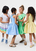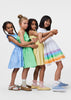 El Vestido Chloey Green Garden de la marca Molo, está confeccionado con algodón ORGÁNICO 100%*, es de color verde, con largo hasta la rodilla, de “un solo hombro”, con volantes y una falda circular. El top de Chloey es de punto de canalé con volante de popelina, mientras que la falda también es de popelina de algodón. La falda está fruncida en la cintura para que sea voluminosa y fácil de mover. Este vestido es perfecto tanto para fiestas como para el uso diario.