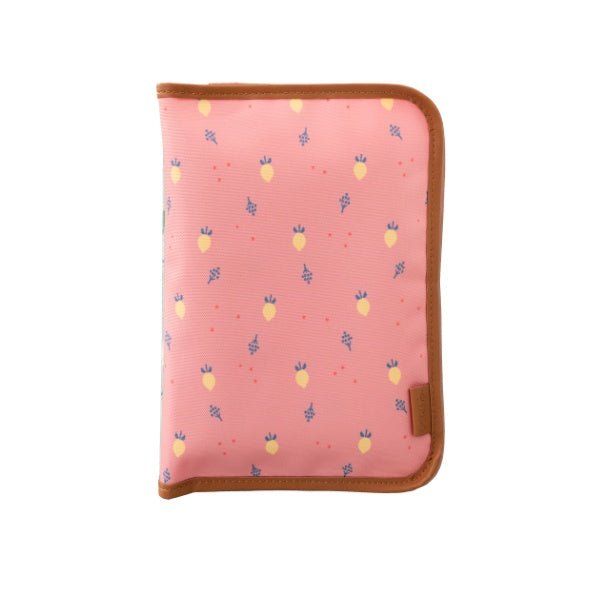 Bolsa-Cambiador de viaje impermeable Limones, de la marca Fresk, está equipada con todo lo que necesitas para cuidar de tu peque fuera de casa. Tiene un cómodo bolsillo para meter las toallitas, y espacio suficiente para guardar hasta dos pañales. Incluye un cambiador plegable con el mismo bonito diseño de Limones sobre un fondo salmón.