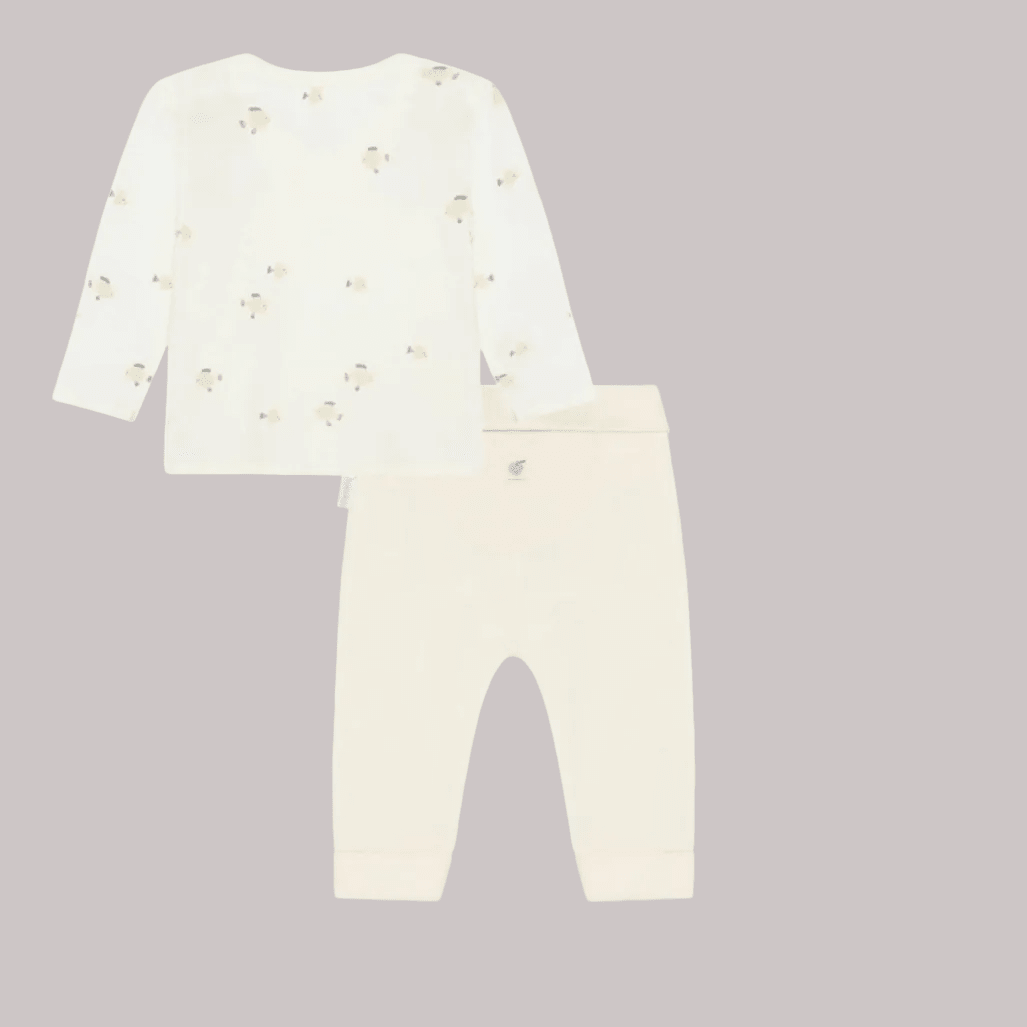 El Conjunto 1a Puesta Egret Sand, de la marca Noppies, confeccionado con suave algodón ORGÁNICO 100% ( Certificación GOTS CERES-0366*) y una pizca de elastano para mayor elasticidad, consta de :