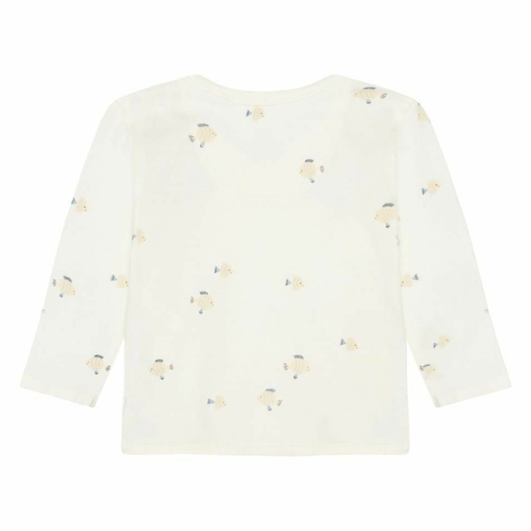 camiseta cruzada de manga larga con un alegre estampado integral de peces sobre fondo crema, es muy suave, el cuello en V y el cierre de botones a presión facilitan enormemente su colocación, ideal para recién nacid@s, el diseño cruzado en la parte inferior proporciona mayor comodidad y un ajuste ceñido, está pensada para facilitar la cura del cordón umbilical hasta que este se caiga. Pantalón sin pies, presenta un color atemporal, ofrece el equilibrio perfecto entre comodidad y un ajuste ceñido. Los bajos acanalados mantienen los pantalones en su sitio sin apretarlos. La cinturilla elástica también aumenta la comodidad y facilita enormemente su colocación. Al no tener cierre, se pueden poner y quitar con un solo movimiento.