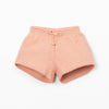 • unos Shorts (con un bonito color salmón, es un modelo corto con cinturilla elástica, y detalle de lazo decorativo, en las perneras tiene un delicado detalle de hilo ribeteado)