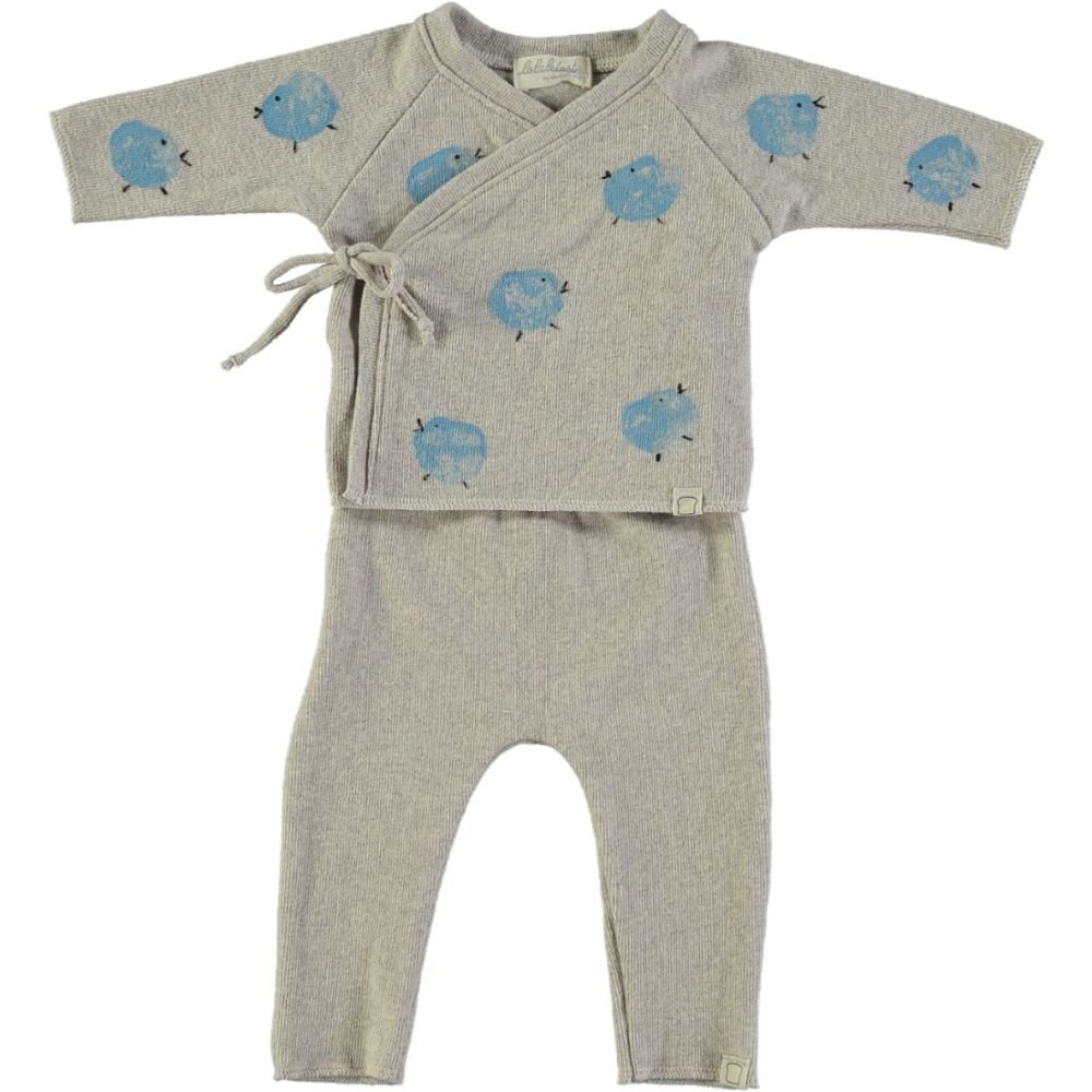 Conjunto 1ª Puesta Beige Pollitos Azul Lolaletost
