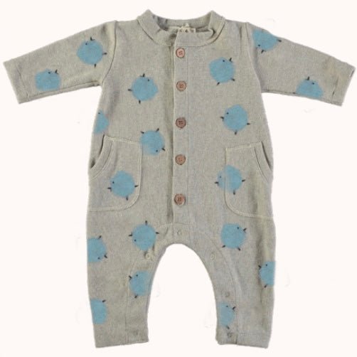 El  Mono Beige Pollitos Azul , de la marca Lolaletost*, está confeccionado en punto elástico de algodón 100%, con interior cardado para mayor confort térmico, es de manga larga y cuello redondo,  va abotonado al frente con botones de madera, y tiene cierres automáticos en las perneras para facilitar el cambio de pañal sin tener que desvestir a tu peque. Tiene dos bolsillos frontales funcionales. Es muy cómodo, adaptable, suave y calentito.