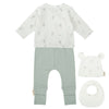 El Set de Nacimiento 4 Pcs. Blue Sky ,de la colección "Casual", de la marca Bimbidreams, es una opción cómoda, sostenible, suave y práctica para los primeros días de tu bebé.