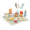 - Madera*: tetrabriks de leche y zumos, 1 botella, 2 platos, 4 cubiertos, 2 vasos, varias piezas ensalada, 1 sandwich, 1 galleta, 1 pieza de fruta (elaborado todo con madera de origen sostenible de bosques con certificación FSC® y recubierto con pintura no tóxica.)