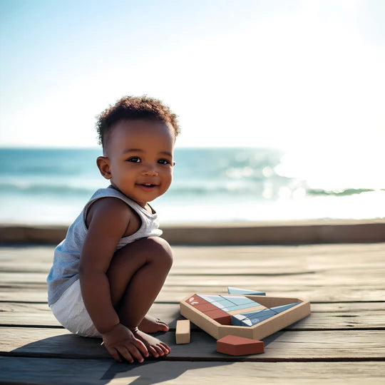 El Puzzle Encajable Bloques Barco, de la marca Speedy Monkey, es un colorido juguete de madera que, con sus formas sencillas y su diseño vibrante, ayuda a l@s más peques a desarrollar la coordinación ojo-mano, el reconocimiento de formas y la resolución de problemas, tanto si colocan las piezas en el tablero como si crean sus propios diseños, todo a través del juego práctico, en niñ@s a partir de los 12 meses.