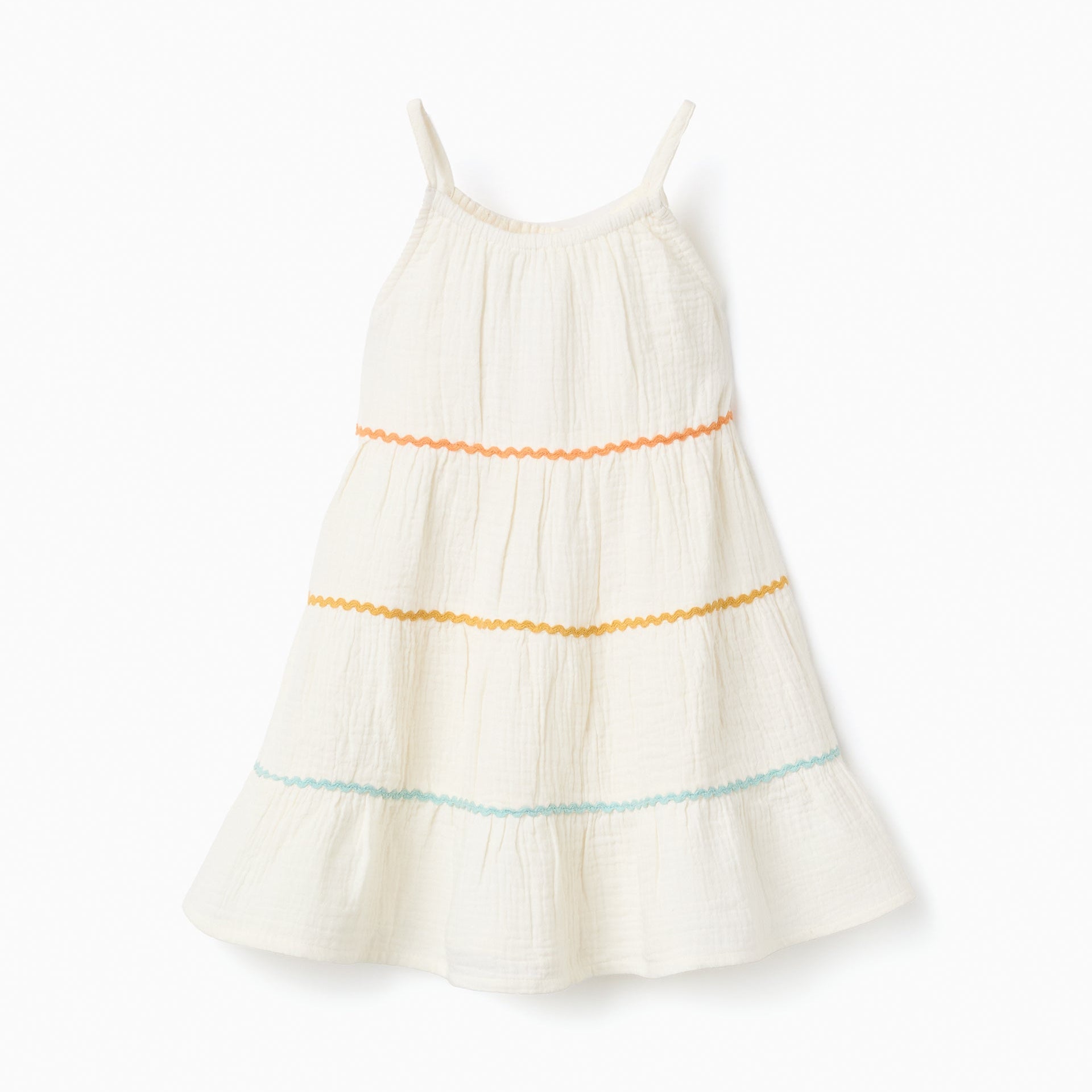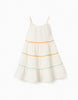 Vestido de Algodón Tirantes Blanco para Bebé ZY, confeccionado en algodón 100% Es un diseño sin mangas, cuello redondo y botones en la espalda para vestir fácilmente ¡Un vestido fresco y original! De la marca Zippy.