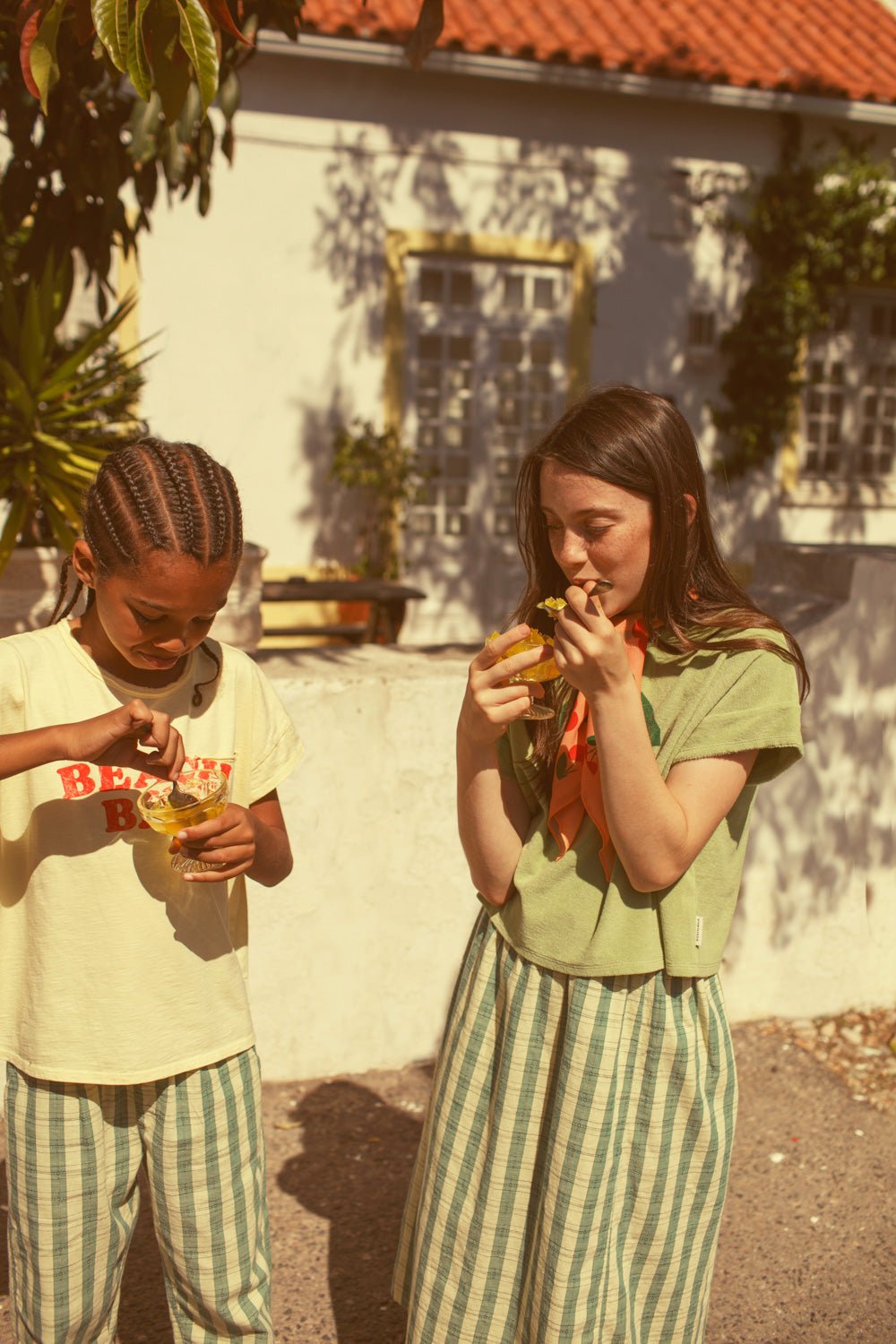 Camiseta Beach Bar Amarila Piupiuchick de algodón orgánico con bordes sin rematar. Detallada con estampados en la parte delantera y trasera Está confeccionada con algodón 100% con un ajuste holgado y cuello redondo, tiene un divertido estampado frontal y trasero.
