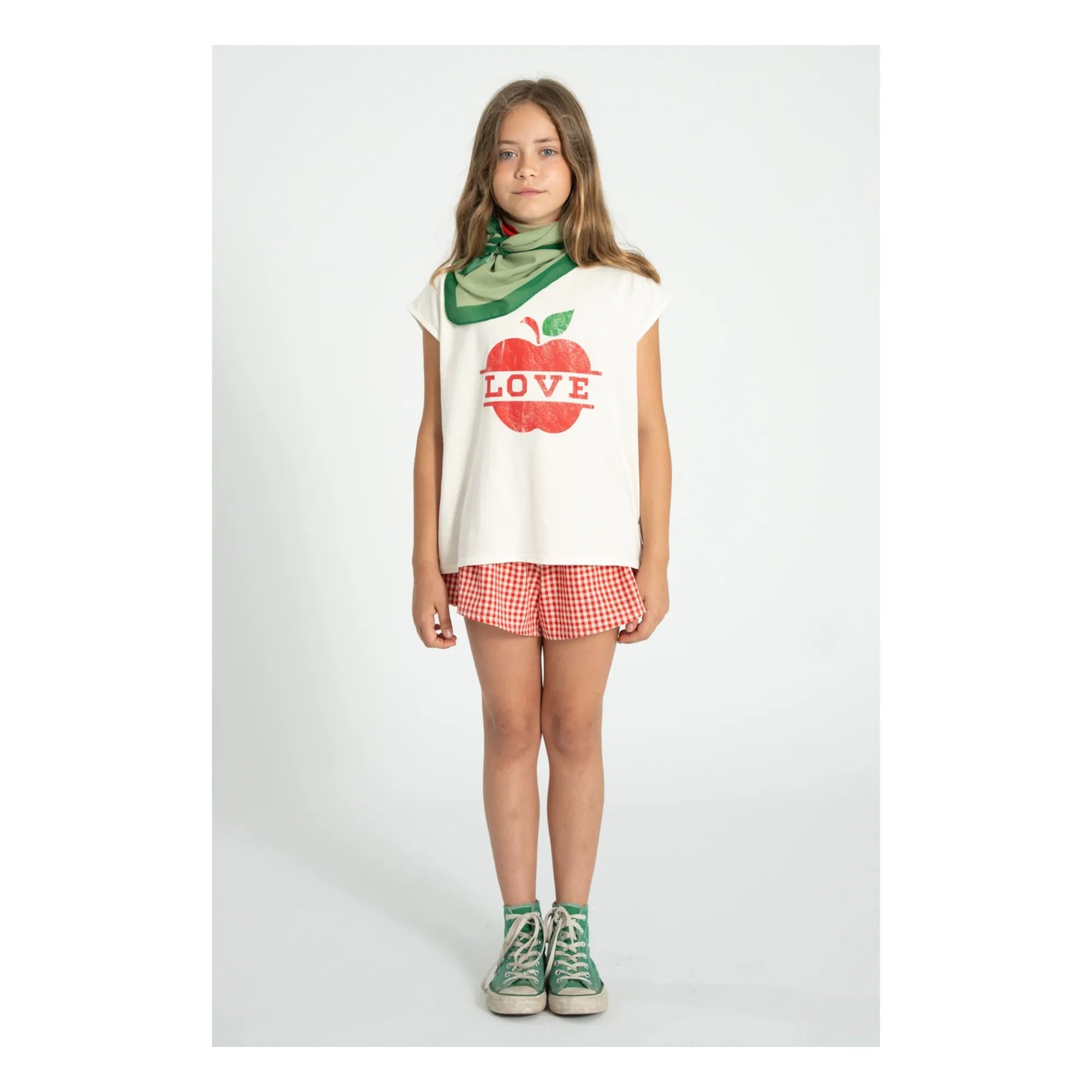 Camiseta Tirantes Amor color crudo Piupiuchick de algodón orgánico con bordes sin rematar. Detallada con estampados en la parte delantera. Está confeccionada con algodón 100% con un ajuste holgado y cuello redondo, tiene un divertido estampado frontal y trasero.