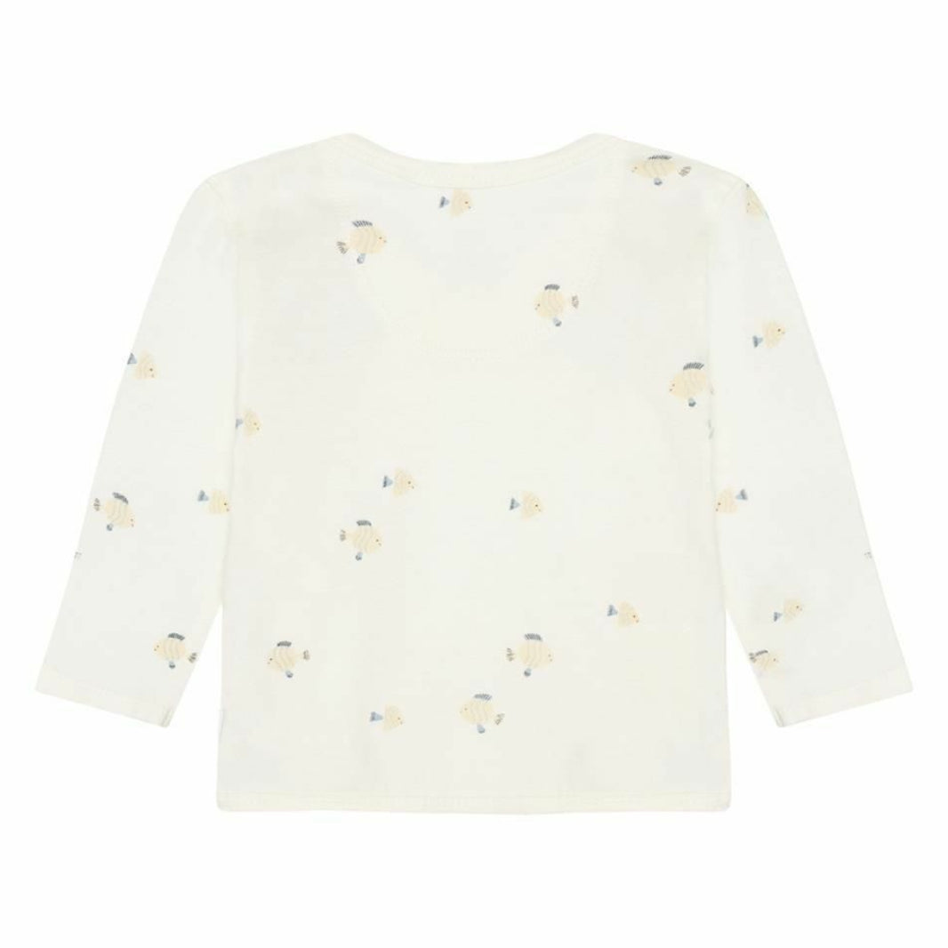 camiseta cruzada de manga larga con un alegre estampado integral de peces sobre fondo crema, es muy suave, el cuello en V y el cierre de botones a presión facilitan enormemente su colocación, ideal para recién nacid@s, el diseño cruzado en la parte inferior proporciona mayor comodidad y un ajuste ceñido, está pensada para facilitar la cura del cordón umbilical hasta que este se caiga. Pantalón sin pies, presenta un color atemporal, ofrece el equilibrio perfecto entre comodidad y un ajuste ceñido. Los bajos acanalados mantienen los pantalones en su sitio sin apretarlos. La cinturilla elástica también aumenta la comodidad y facilita enormemente su colocación. Al no tener cierre, se pueden poner y quitar con un solo movimiento.