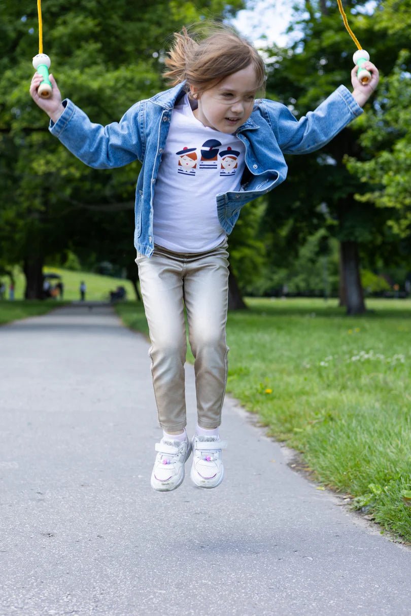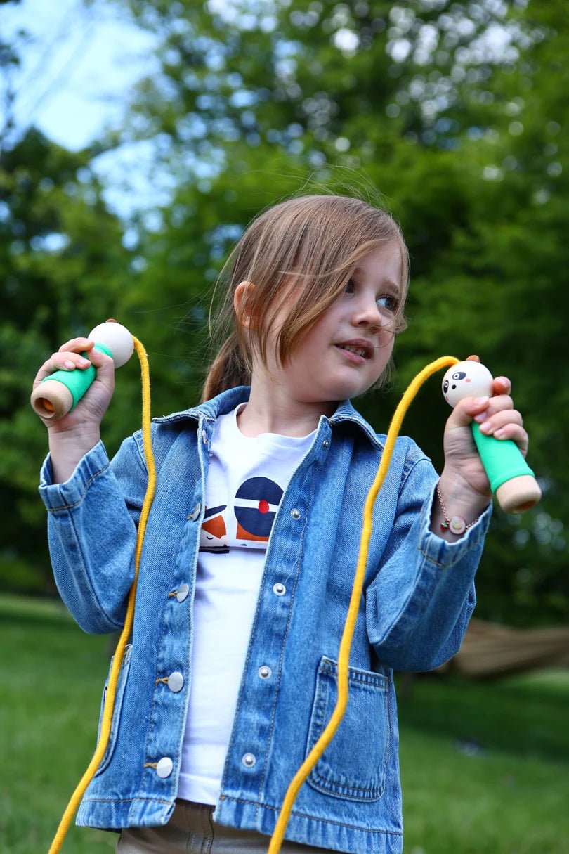 Algunos clásicos nunca pasan de moda, como esta comba con su adorable mango de panda que, no solo proporciona ejercicio, sino que también es una herramienta inteligente para desarrollar la coordinación, el ritmo y la resistencia. Gracias a la longitud ajustable de la comba, el equipo crece con tu hijo, desde sus primeros saltos hasta sus récords. mano.