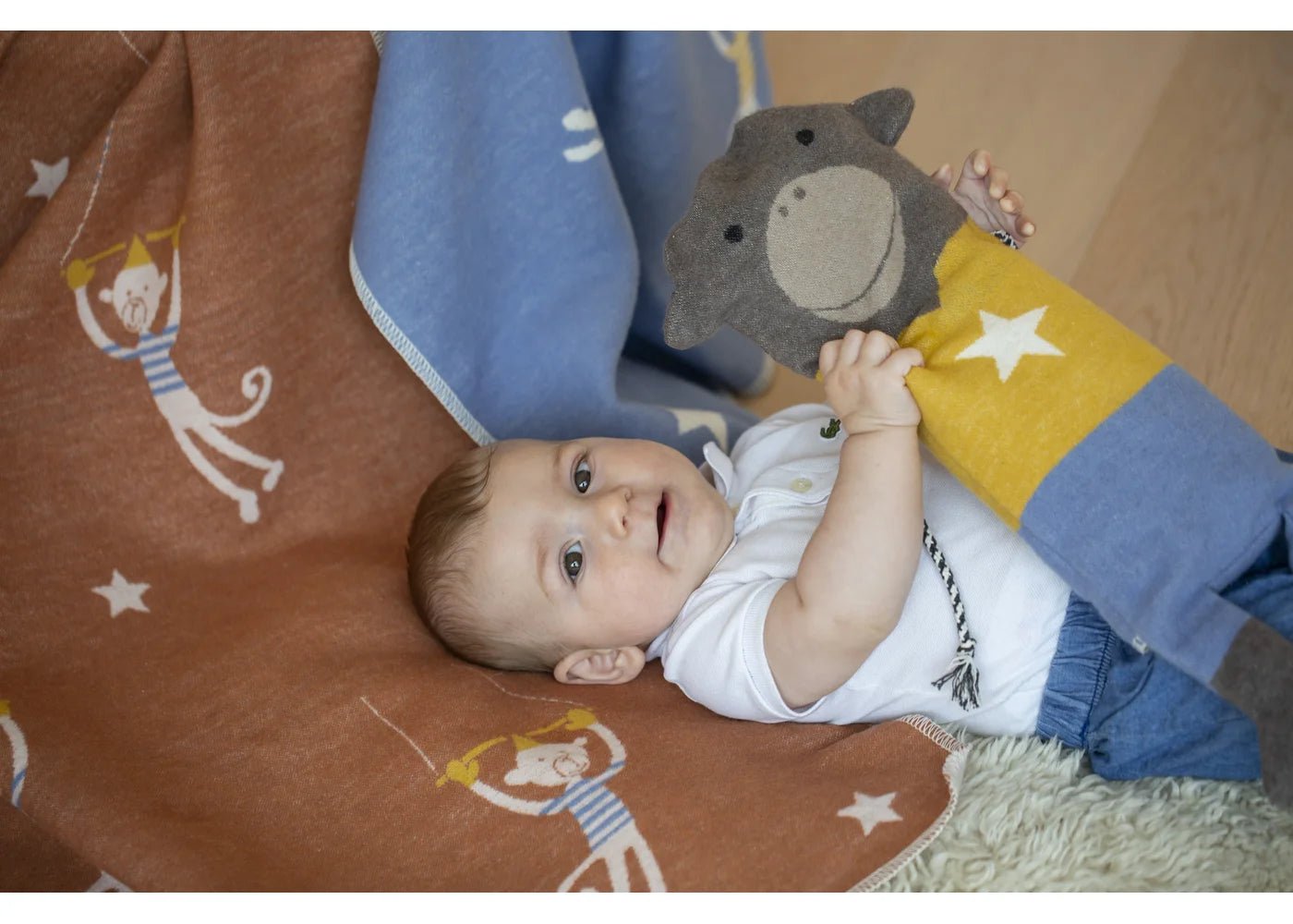 La Manta-Marioneta Monito de la marca David Fussenegger,es la combinación perfecta de manta y peluche: una manta mullida de felpa de algodón, escondida en una linda muñeca. Fabricada con hilos reciclados de alta calidad y muy suaves, la manta es especialmente transpirable y agradable para la piel. La manta es muy fácil de quitar de la muñeca y de volver a guardar.