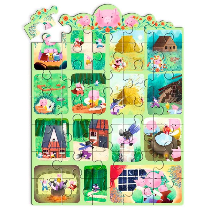 El Puzzle Cuento de Los Tres Cerditos, de la marca Djeco, es un encantador rompecabezas de 35 piezas que permite a los niños y niñas recrear la historia clásica de Los Tres Cerditos. Con ilustraciones coloridas y detalladas, este puzzle es perfecto para que l@s más peques se sumerjan en el mágico mundo de los cuentos.