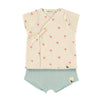 El conjunto para bebé de Top + Poppies Ecru de la marca Baby Clic, es una opción ideal para l@s bebés que nacen en pleno verano. Es un set hecho de suave algodón ORGÁNICO 100%* el top es de manga corta, cruzado tipo kimono, el culotte, tiene cintura y perneras de suave canalé elástico. Una opción estilosa, cómoda y fresca, para los primeros meses del bebé en días calurosos.